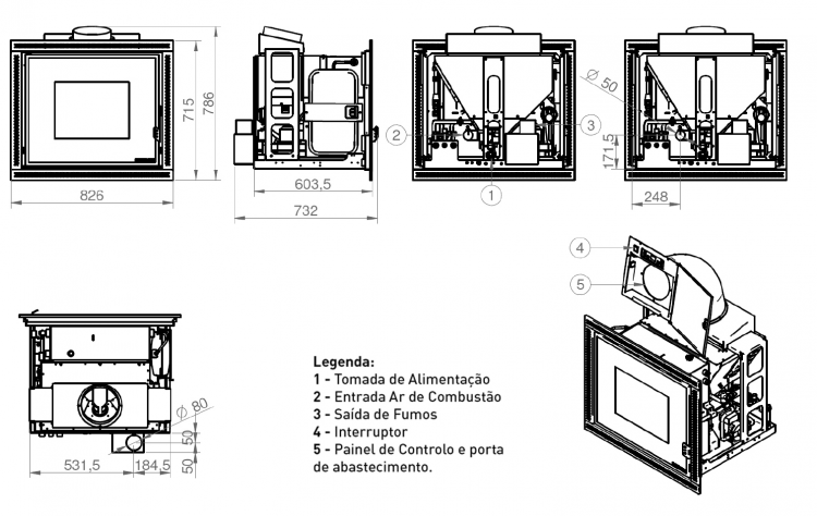 • Carregamento de Pellets através da Conduta com posição frontal ou lateral.