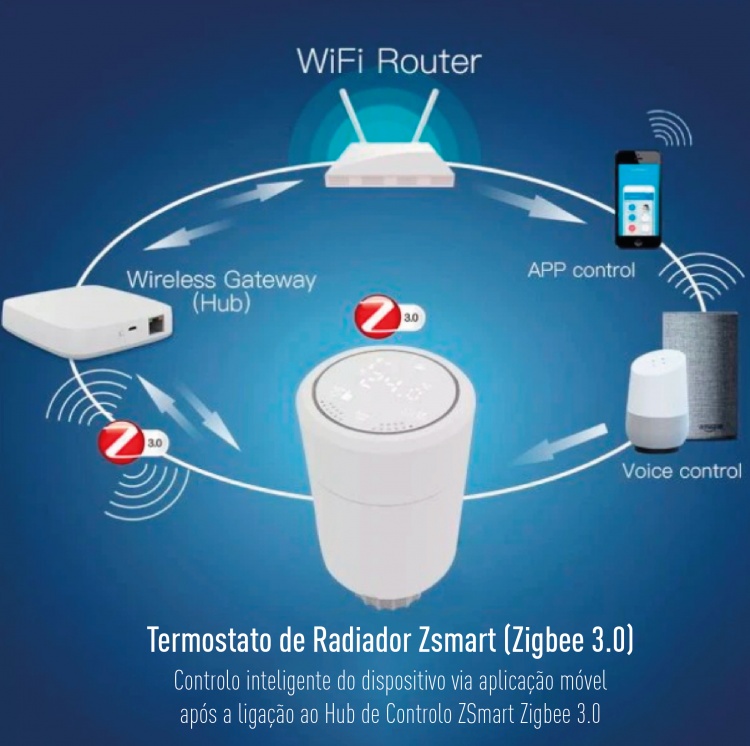 > Para o controlo remoto do termostato é necessário 1 Hub de Controlo ZSmart Zigbee (não incluído), vendido em separado.