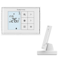 Nova geração de termostatos inteligentes ZSmart com Wireless. Concebido para sistemas de climatização. Pode ser instalado na secretária. Possui um modo de poupança de energia que ajuda os utilizadores a poupar nas contas de eletricidade. Este modo permite programar o aquecimento de forma a que a temperatura diminua quando não está ninguém em casa. Disponível em Branco.