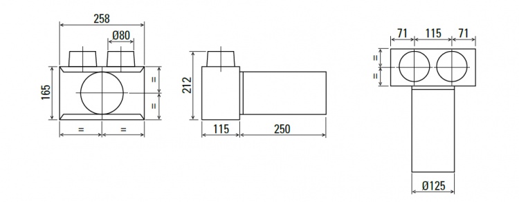 DN150 | 2 x 125 mm | saídas posterior ou lateral